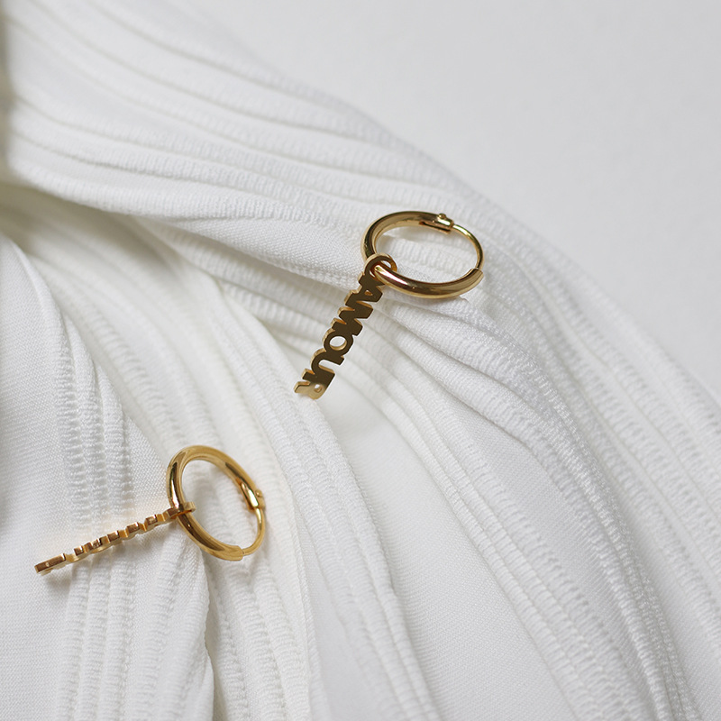 Size: earring diameter 1.6cm, letter size 2.1X0.4cm